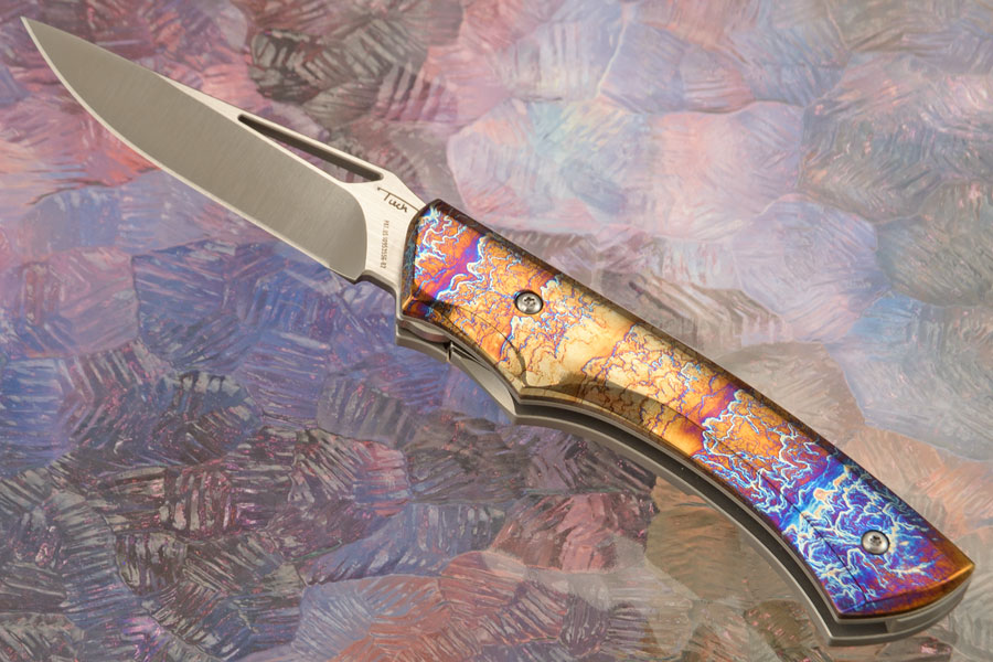LEXK CFL Framelock Front Flipper with Copper Dark Matter FatCarbon Inlay - Satin Finish, Drop Point - Elmax