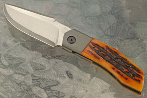 Bolsterlock Front Flipper with Amber Stag and Titanium - VG-10 San Mai Damascus |