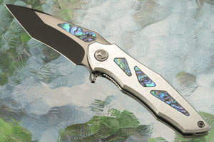 Noah Flipper with Forged SG2 Damascus San Mai, Titanium, and Abalone Inlays |