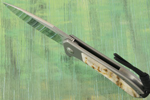 A glass bead blasted titanium frame ensures this mid sized folder will be light in the pocket, yet have tremendous strength and durability. Each side features a sheep horn inlay. It will be easy to keep the Orca Flipper close at hand using the titanium pocket clip, mounted for tip-up, right-hand carry.