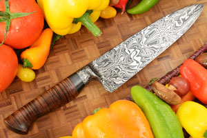 Product Description for Chef's Knife (8") with Integral Mosaic Damascus and Curly Koa
