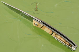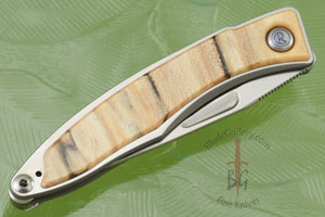 Handle: Spalted beech wood scales inlaid into a 6Al4V titanium frame