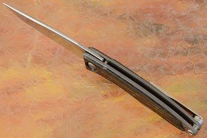 Both the frame and pocket clip are formed from 6Al4V titanium, keeping this knife extremely light and durable. The clip is mounted for tip up carry. The knife can be comfortably opened and closed with one hand and locks open for safety. The thumb rest is fileworked for dependable handling. The Mnandi features a strong integral locking mechanism that Chris Reeve popularized.