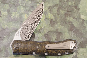 L51 Flipper with Carbon Fiber, Gold Dust Shred Carbon Fiber, and Damasteel (Ceramic IKBS)