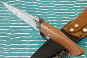 To keep the knife close at hand, a hand tooled leather sheath is included.