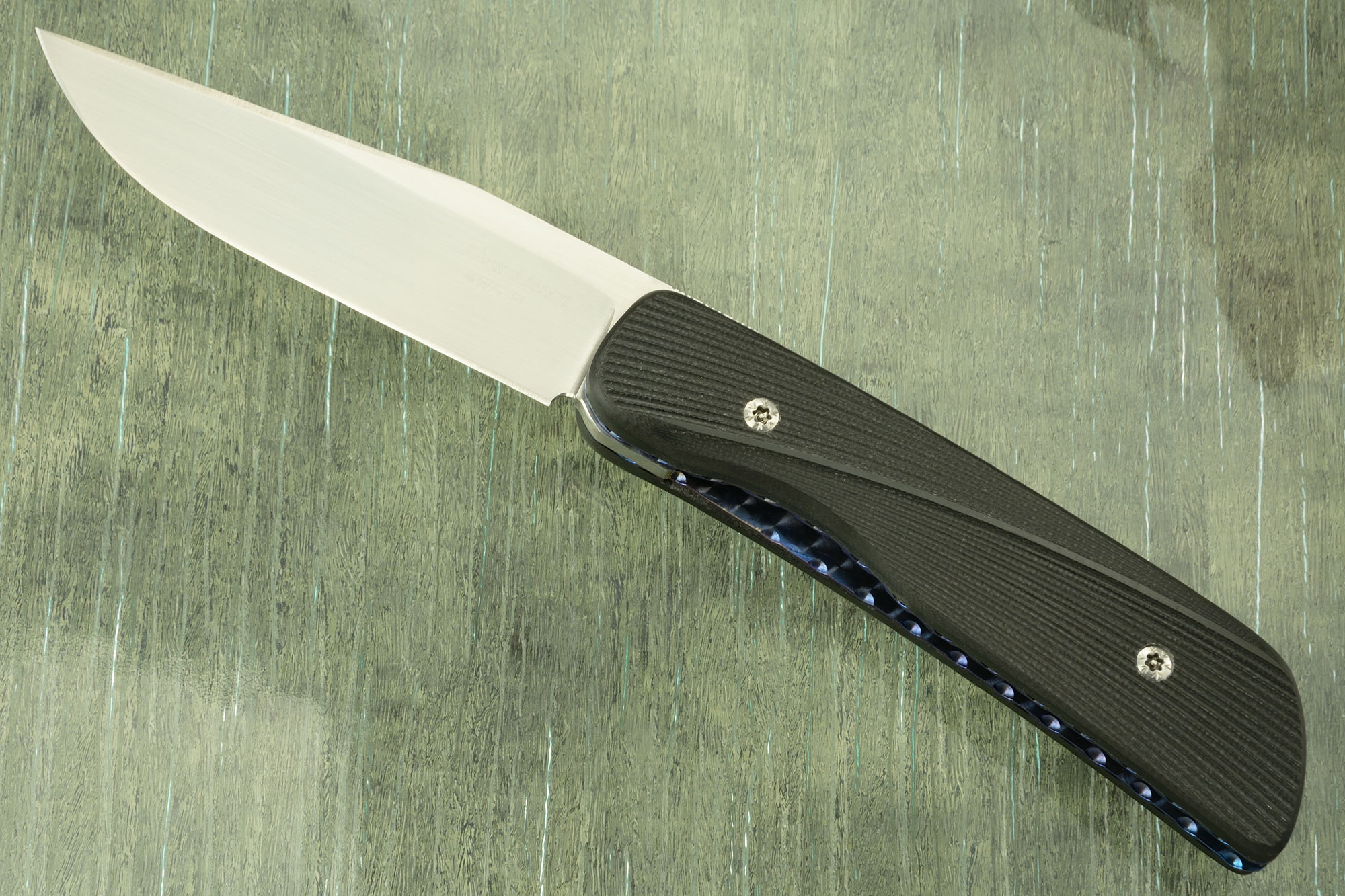 Handle: 3D machined "twist" black G-10 set on anodized titanium liners