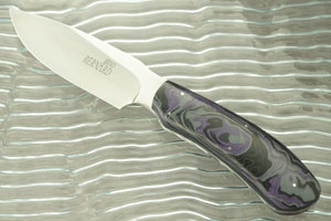 This drop point hunter is made from Bohler N690 stainless steel. N690 takes an incredibly sharp edge and holds onto it. Increased toughness gives it better resistance to edge chipping. The blade is hollow ground to a high performance edge.