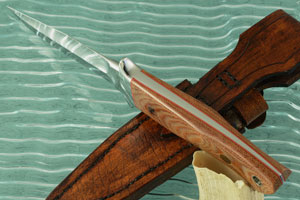Description: Bob Loveless developed the Boot Knife as a very versatile custom hand made knife. It was designed to be a well balanced knife -- not too heavy, not too light. As a modified chute knife, it provides plenty of function. This Deon Nel Boot Knife shows Nel's work at its best. It works equally well as a hunting knife and for self defense.