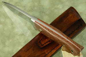 Description: The Loveless style Drop Point Hunter is perhaps the quintessential hunting knife throughout the world. Loveless developed a hunting knife shape that just works exceptionally well. This Deon Nel Loveless Style Drop Point Hunter is no different.