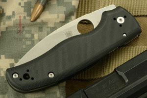 This model is built with a CPM-S30V stainless steel blade. A high saber grind and prominent swedge create excellent edge geometry and a fine-tuned point. This masterfully executed grind balances strength, low-friction edge geometry, and an acute utilitarian point to offer a blade that will easily tackle most any cutting chore. The Spyderco Round Hole is fully accesible from both sides to support swift on-handed opening with either hand.