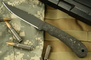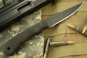 Rubber scales are set on a full tang. The handle provides a secure, comfortable grip with just the right amount of 'give'.