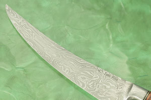 This beautiful knife is the right tool for two key kitchen chores — boning and filleting. When boning, the narrow, sharp, curved blade gets in close to the bone, making it easy to separate meat from bone. The extremely sharp edge even cuts through fibrous material with ease. It's perfect for trimming the silverskin from a tenderloin or even making your own cutlets. The narrow blade reduces drag as you cut against the meat, so cutting is fast and easy. When it comes to filleting fish, the blade's 8 inch length is just right to glide through the body of the fish, quickly removing bones and skin.