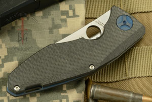 The blade of the Spyderco Drunken with Carbon Fiber (C235CFTIP) is full-flat ground from CPM-S90V stainless steel and features a tumbled finish. CPM-S90V is an excellent high-end, American-made, powdered metallurgical steel with a uniform micro-structure. The high carbon content combines with vanadium to form vanadium carbides, providing incredible wear resistance while leaving the chromium free to provide a high level of corrosion resistance. This is among the highest performing steels Spyderco uses!