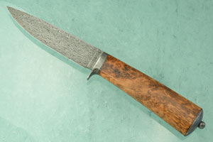 This drop point hunter made by Franco is an exceptional knife. From the perfectly controlled damascus pattern to the subtle, yet intricate sculpting of the handle, this knife is a perfect example of Franco's high level of skill as a knifemaker.