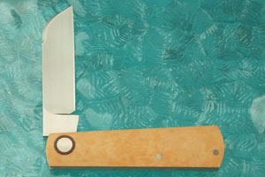 The 2-3/4 inch blade is made from RWL-34 stainless steel. RWL-34 is a premium powder metallurgy cutlery steel manufactured by ERASTEEL in Söderfors, Sweden. Because it is made from rapidly solidified powders, the microstructure of the steel is much more uniform. This gives the steel much higher strength and resistance to cracks and chips. The blade is hand hollow ground for an easy to maintain edge. It is well centered with a firm half stop -- easily opened with the right handed thumb nick.