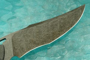 Contoured carbon fiber handle scales are set on black Micarta liners. A distal tapered full tang provides superior structural strength. The scales are set in place with two stainless steel Corby hidden bolt rivets. This knife has a perfect balance. It is among the most comfortable handles you will ever feel.
