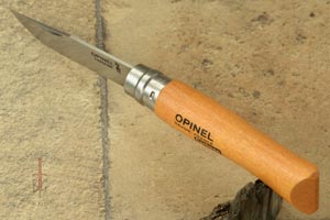 Description: The Opinel knife has long been a feature of everyday French culture. It was invented by Joseph Opinel in about 1895. The company is still run by the Opinel family. Like the original design, this piece is formed from carbon steel and beechwood. This ingenious knife has become well known throughout the world for its elegant, durable simplicity. In fact, the Opinel knife was featured in the Victoria and Albert Museum in London's "Good Design Guide", a collection of the "100 most beautiful products in the world". It is also exhibited by New York's Museum of Modern Art (MOMA) as a masterpiece of design, alongside other industrial objects which ash defied time.