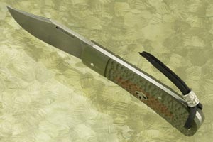 Handle: Jigged green and tan G10