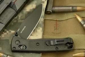 Description: Don't let its size fool you. The Benchmade Mini-Bugout Folder (533BK-2) packs a mean punch and does it with class. Wrapped in black and tipping the scales at 1-1/2 oz, this pint sized slicer takes ultralight performance to the next level.