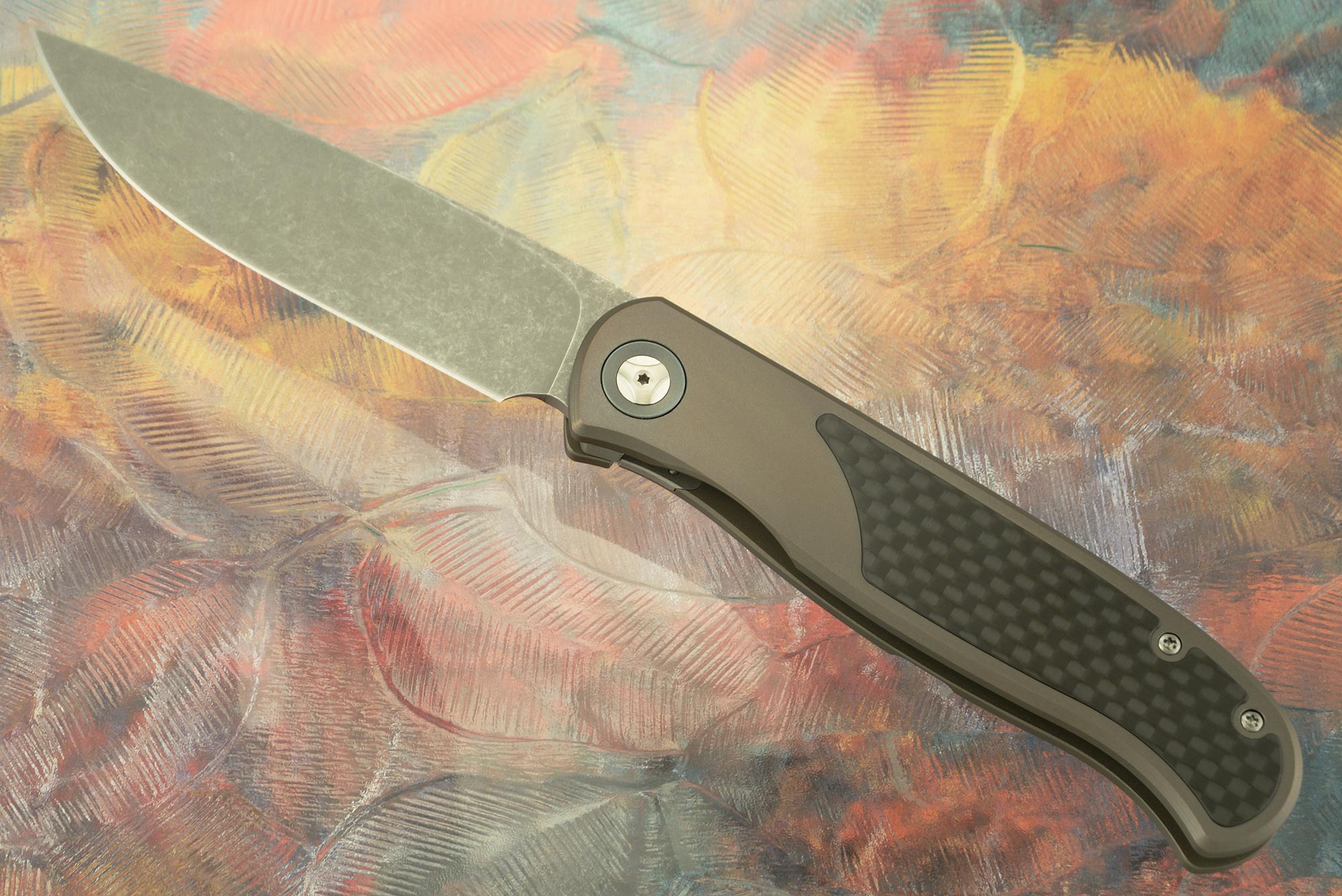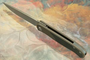 Handle: Bead blasted titanium with an anodized titanium pivot ring and carbon fiber inlay