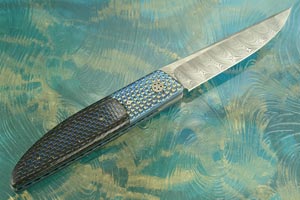 Blade: Stainless damascus forged by Damasteel, hardened, sub-zero quenched, and double tempered by Des for excellent edge retention