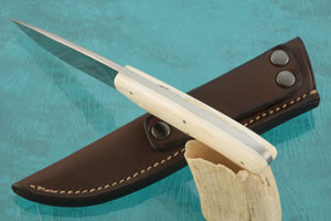 Warthog tusk handle scales are set to the full tang using stainless steel pins. This sturdy knife is comfortable to hold and has excellent balance. From caping and skinning, to cooking around the campsite, this knife has you covered as a perfect everyday carry!