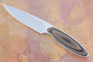 The blade is hand ground 12C27 stainless steel, created by Sandvik in Sweden. It takes an incredibly sharp edge and holds onto it. The blade is hollow ground for an easy to maintain edge.