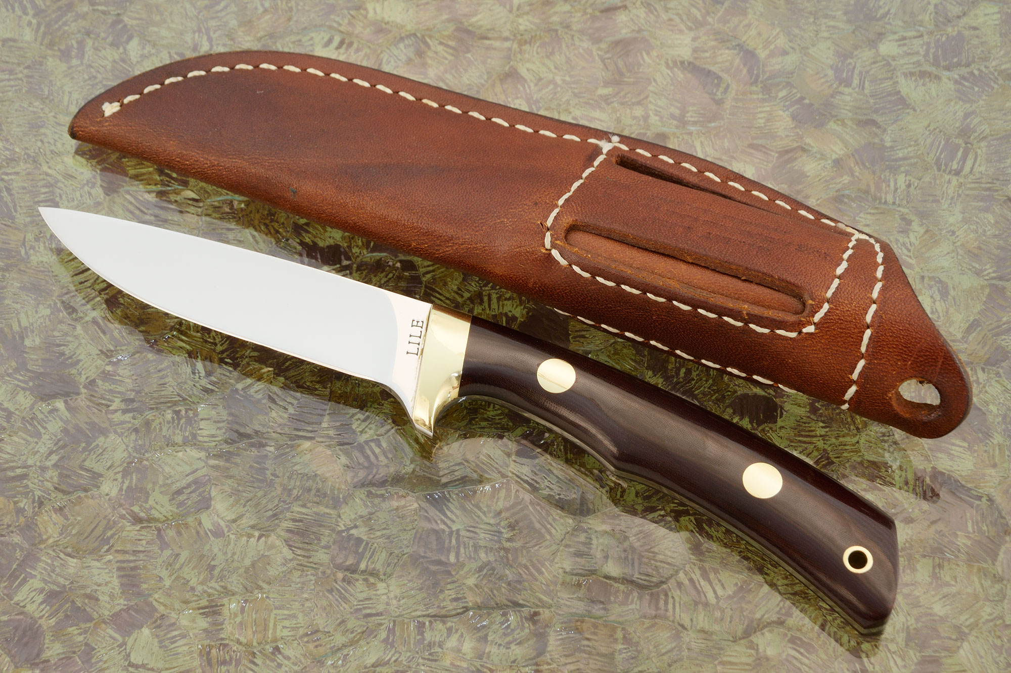 Description: Jimmy Lile, a full-time knifemaker since 1970, was known as "Gentleman Lile" or "The Arkansas Knifemaker". Jimmy became very well known for producing the knives for the original Rambo First Blood and First Blood II movies. Jimmy also made knives for the likes of Presidents Ronald Reagan, Richard Nixon, Gerald Ford and Bill Clinton. Unfortunately Lyle passed away in 1991 from a heart attack during the peak of his career. His knives are hard to come by these days and sought after by avid knife collectors throughout the world. This Model 7 Canoe is an excellent example of Jimmy's clean work. This knife was kept in a private collection since it was made. It is in brand new condition and has never been carried or used to cut. Note that this is not a Lile 'dot' knife, but is instead a handmade knife by Jimmy Lile.
