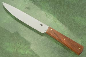 The handle is made from African Mopane (Colophospermum mopane). Mopane an extremely dense wood with nearly unrivaled durability. Handle scales are set on the distal tapered full tang using brass pins.