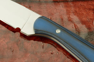 The G10 handle has been nicely rounded for a sure, comfortable grip. Filework on the spine provides sure thumb purchase.