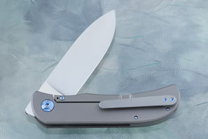 The EXK was originally developed by Trevor's father, Fred Burger in conjunction with Mike Skellern, and continues to be one of the most popular folders that Trevor makes. This version is the Large EXK. The blade runs on caged ceramic ball bearings and has silky-smooth, drop-shut action. It is easily opened single-handed using the discreet front flipper. The blade is perfectly centered.