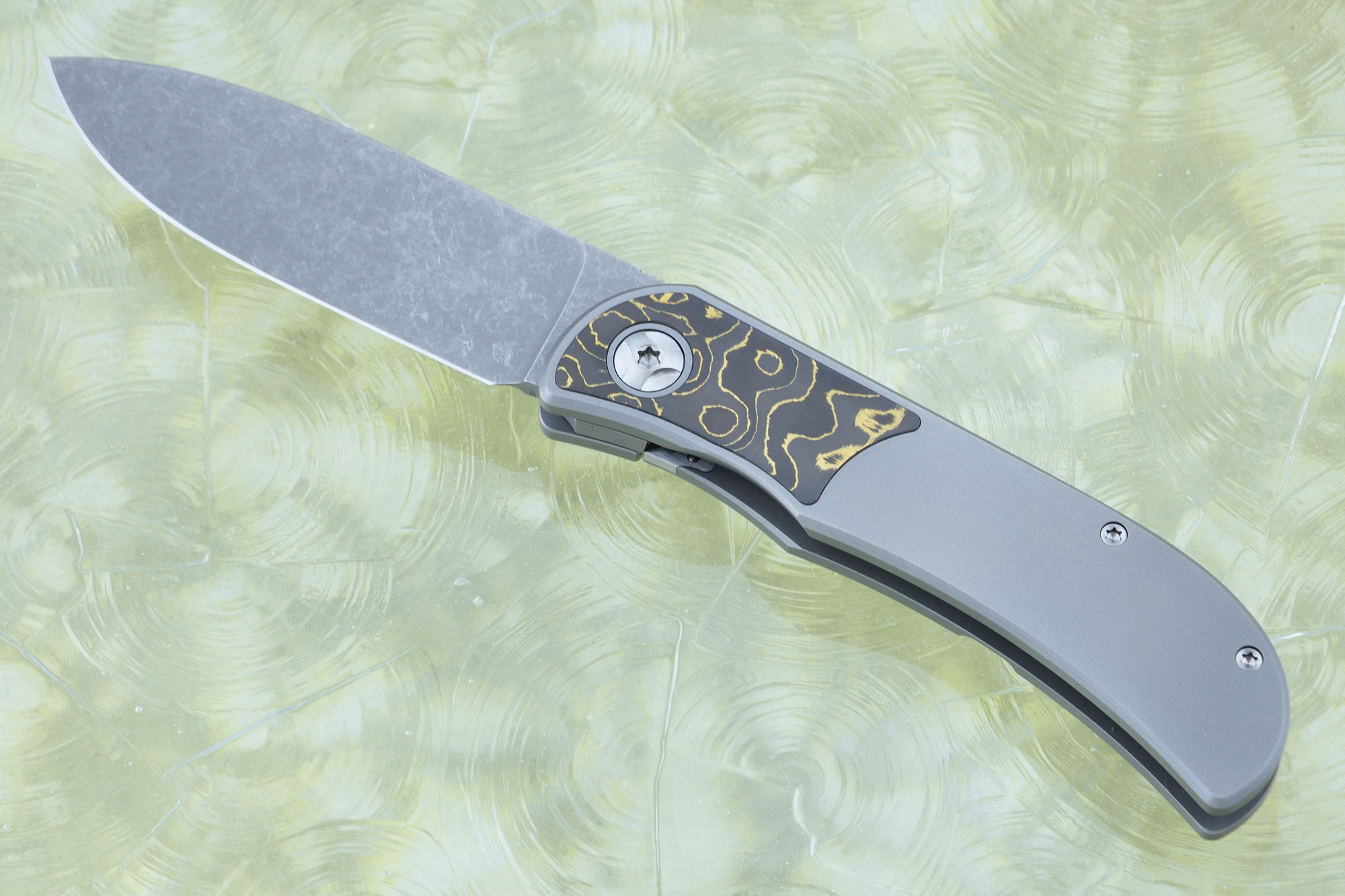 Handle: Bead blasted titanium with Gold Snakeskin FatCarbon inlay