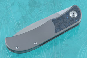 Handle: Bead blasted titanium with Blue Dark Matter FatCarbon inlay