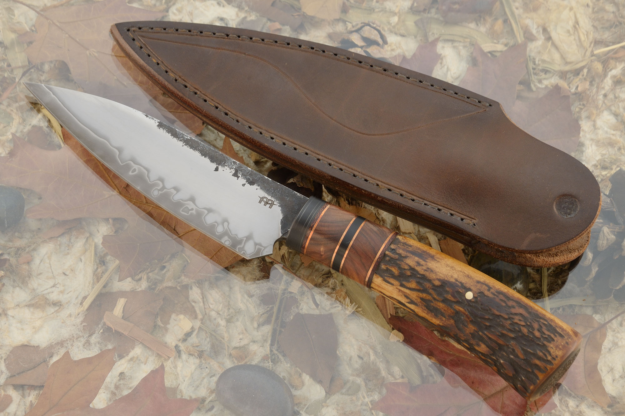 Utilitarian: San Mai Belt Knife with Madagascar Rosewood and Stag