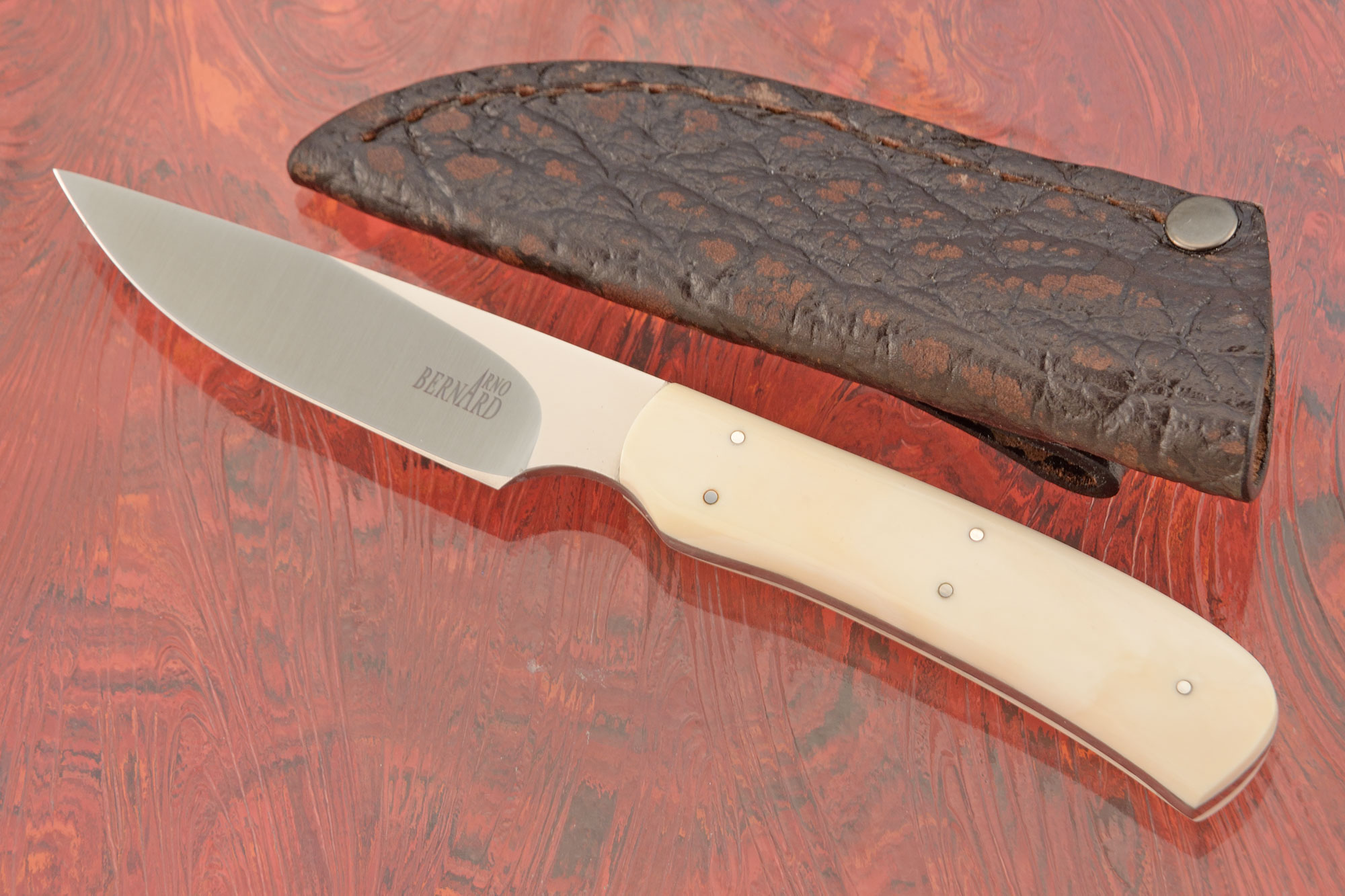 Description: Arno Bernard Sr. is a maker from South Africa and has been making knives for over 35 years. He has been a member of the Knifemakers Guild of Southern Africa (KGSA) for over 20 years. Living in South Africa has allowed him the luxury of using many different exotic handle materials -- some even collected himself.