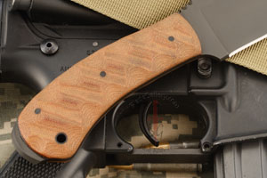 Product Description for Crusher Belt Knife with Sculpted Tan Laminate