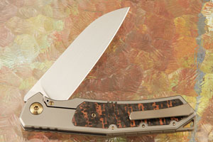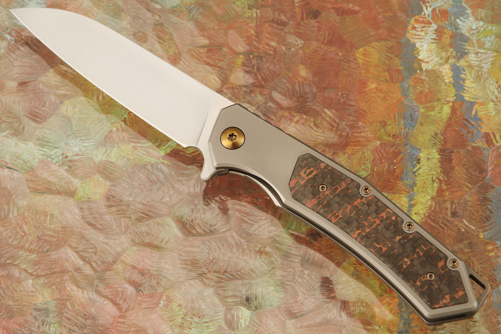 Handle: Bead blasted titanium with Copper Snakeskin FatCarbon inlay