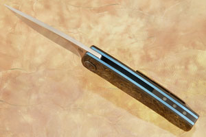 Description: This folding knife was made by South African knifemaker Herucus Blomerus. A resident of Pretoria, Herucus (pronounced 'eh-roo-koos') has been a proud member of the South African Knifemakers Guild since 2005. Rucus' folders combine incredibly smooth action with a high level of fit and finish. Rucus has become a powerhouse of the South African flipper makers.