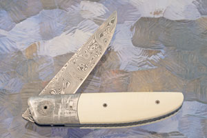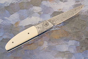 Blade: Stainless damascus forged by Damasteel, hardened, sub-zero quenched, and double tempered by Des for excellent edge retention