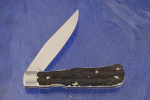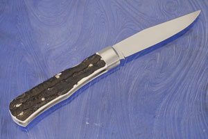 Handle scales are formed from stag bone and are attached with hand domed pins. The scales provide a secure, comfortable grip. This compact knife is lightweight (just 1.8 oz!) and will comfortably fit in any pocket including the change pocket in a pair of jeans.