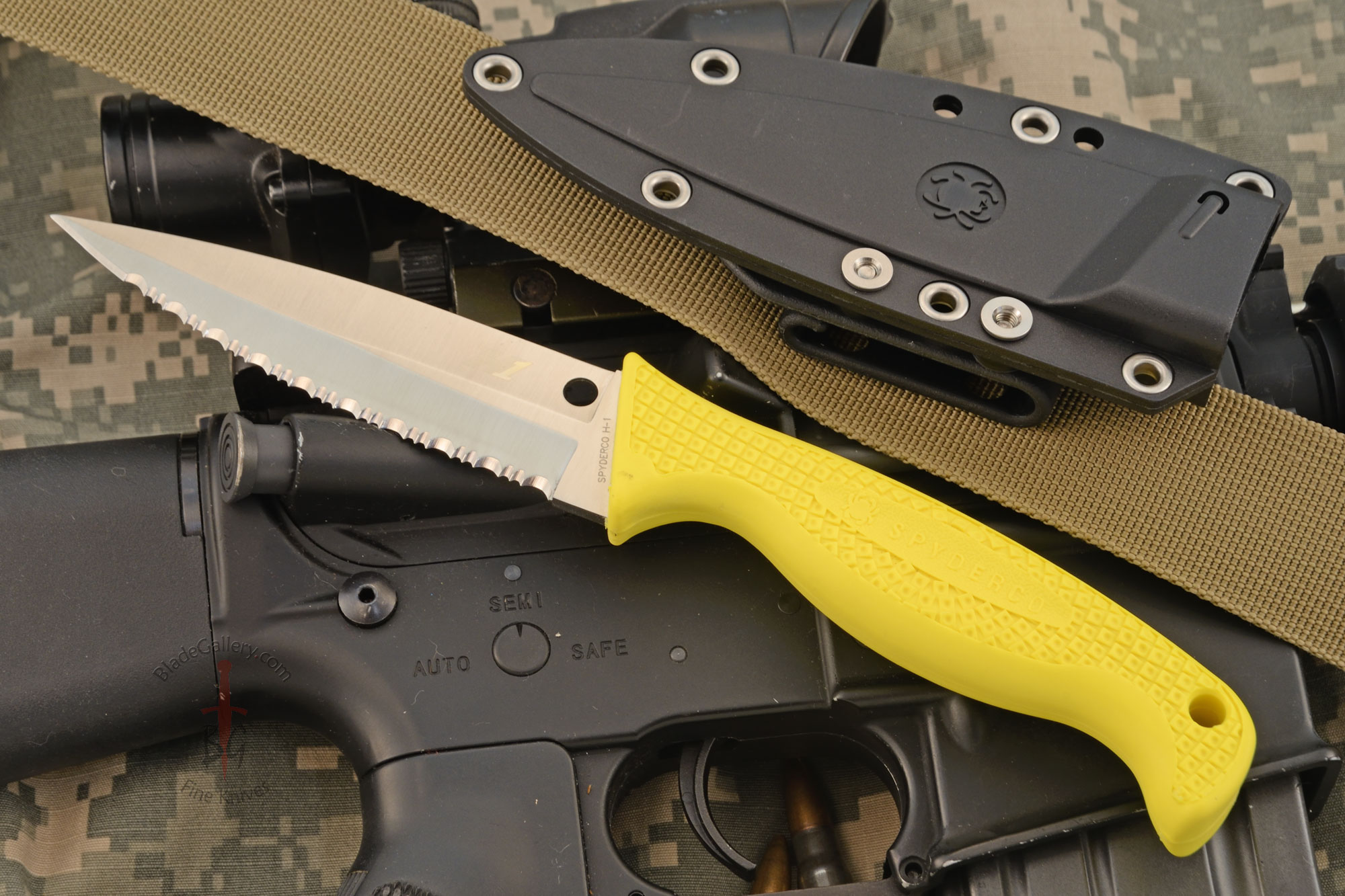 Description: Since the introduction of the remarkable Salt Series™ of knives, Spyderco has received numerous requests for a fixed-blade knife specifically designed to meet the demanding needs of free divers and spear fisherman. These daring sportsmen do not use SCUBA gear and dive deeply relying only on their ability to hold their breath for extended periods. If they become tangled in a fishing line, net, or other obstacle or have the need to dispatch a speared fish quickly, they need a dive knife that cuts very aggressively and has a sharp, very acute point. The Fish Hunter was designed to meet that challenge.