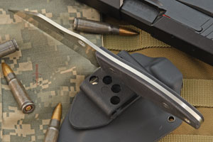 For maximum versatility, the Ronin 2 comes equipped with a custom-molded Boltaron® sheath and a G-Clip™ attachment that supports both belt carry and clip-style inside-the-waistband carry. The G-Clip is also configurable for vertical, horizontal, or diagonally canted carry and can be attached to both faces of the symmetrical sheath.