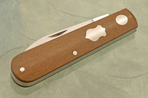 Handle: Brown Richlite with a stainless steel shield inlay