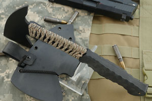 Tactical Compact Hawk with Sculpted Micarta and Camo Paracord