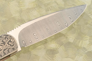 HI-04 Front Flipper with Damascus, Maple Burl, and Engraved Titanium