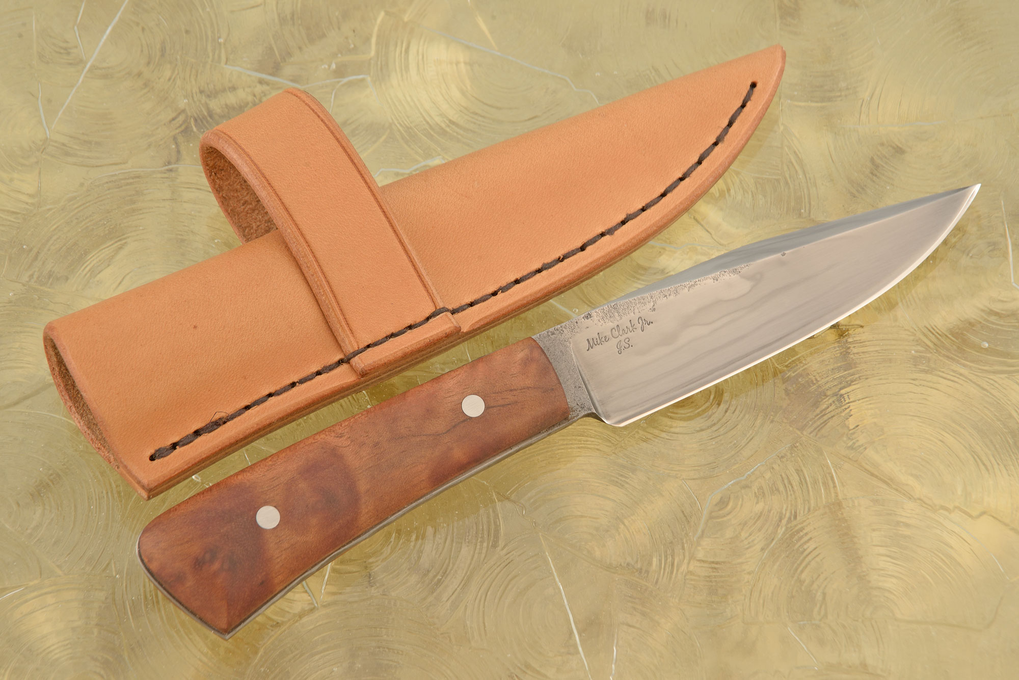 Description: I was excited when Mastersmith David Lisch introduced me to Mike Clark Jr back in 2018. Since then, his work has continued to show his tremendous attention to detail. Given the level of work, it is no surprise that Mike easily passed his JS Test at the 2019 Blade Show in Atlanta, GA.