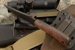 Sheath: Ambidextrous leather covered Boltaron sheath with metal belt clip