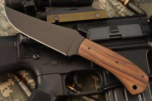 This knife is very similar to the standard issue model Daniel Winkler is currently providing to active duty operators within the Naval Special Warfare Unit. The blade is formed from 3/16" 80CrV2 carbon steel with a non-glare Caswell black oxide finish. A walnut handle is set on the full tang. A tapered full tang means great balance.