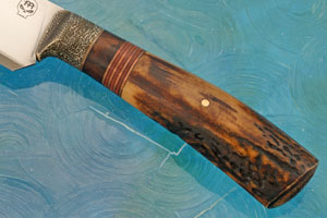 Handle: Stag with alternating copper, Micarta and ironwood spacers