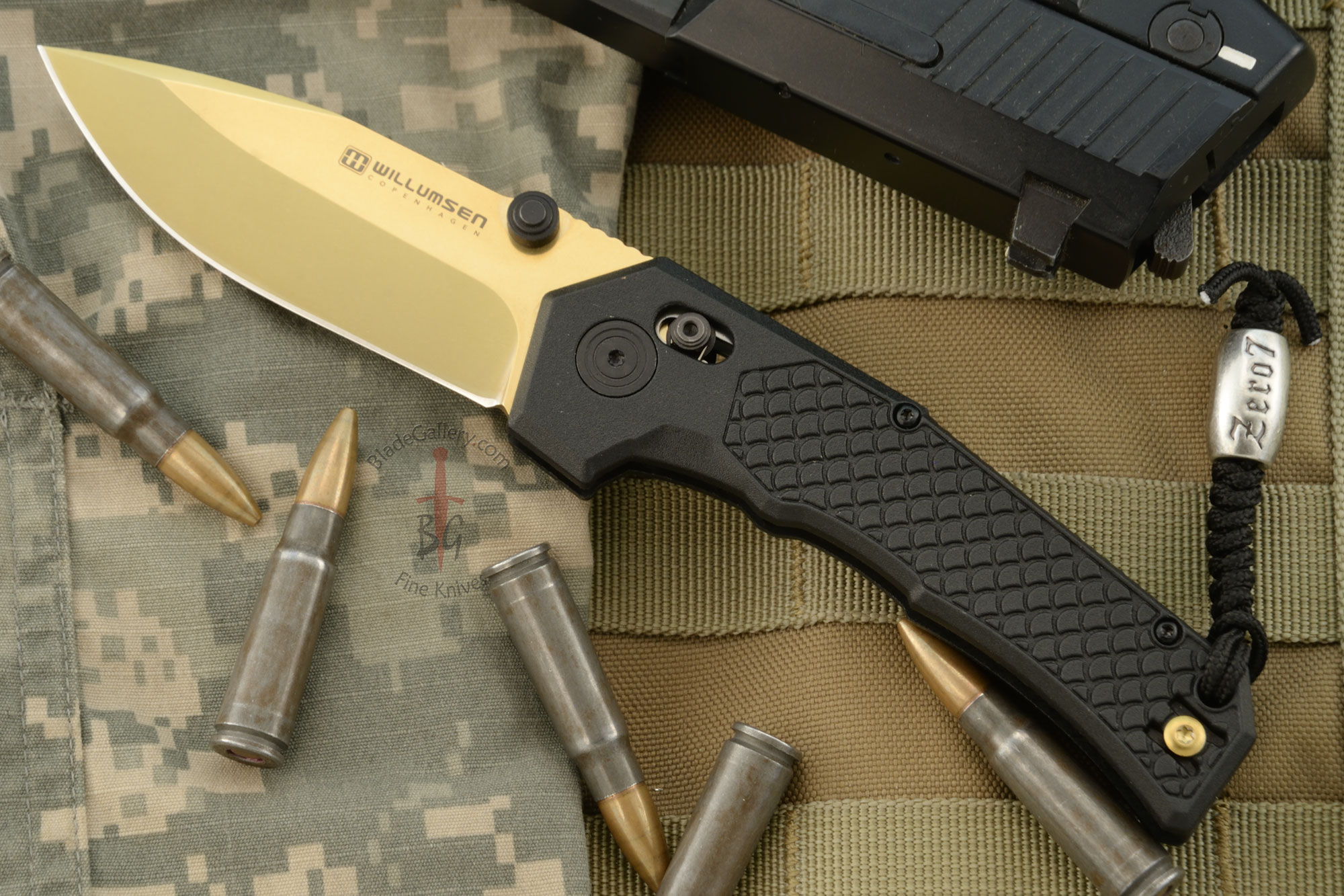 Blade: 440C stainless steel with a titanium gold stonewash finsih